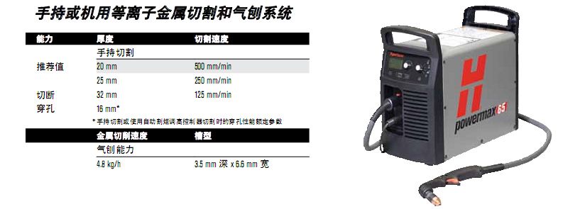 最大切割速度系根据 Hypertherm 实验室测试所得的结果。为实现最佳切割性能,实际切割速度可能会随不同的切割应用而有所不同。有关更多详情,请参考《操作手册》。